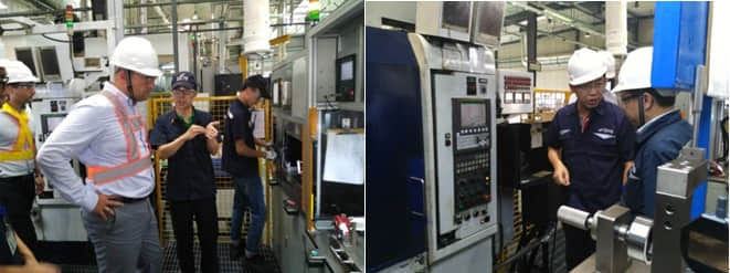 与会双方就GM1.5项目当前生产情况及未来投产规划做了详细沟通。包括生产质量控制,未来新生产线的投产准备工作等。会后,集团董事长陪同博格华纳客户一起参观了威斯卡特武汉机加工厂。对GM1.5项目产品的机加工艺,生产流程,检验检测等各个环节做了仔细的调研。现场规范的5S管理,合理的设备布局和先进的生产工艺得到了客户的认可和赞扬。