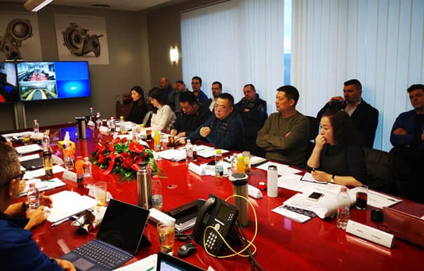 波鸿实业副总经理兼威斯卡特北美区域负责人万涛,威斯卡特匈牙利工厂总经理刘安凌分别向蒋代明董事长、李赤波总经理详细汇报了威斯卡特加拿大和美国工厂、匈牙利工厂的2018年投资、订单、生产、销售和财务等情况,同时剖析析了经营管理中存在的主要问题、当前面临的主要困难,并提出了需要上级公司协调和解决的事项。围绕工厂下一步如何拓展市场、加强管理、把控质量、改善经营等话题,与会人员提出了各自见解和工作建议。
